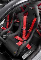 - Adelante lleva dos butacas de competición, hechas de carbono, con cinturones de seis puntos.